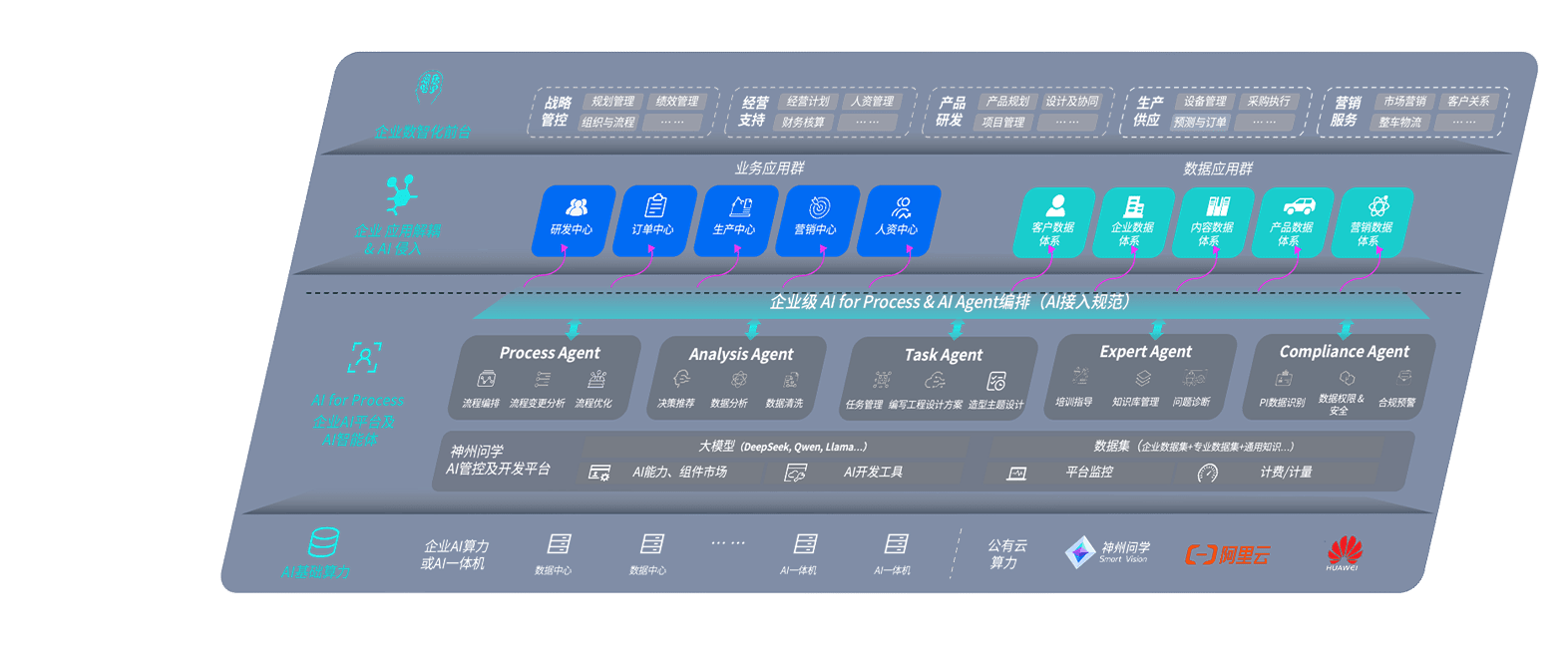 欧博ABG问学智车解决方案是一套基于AI技术的汽车行业智能化系统,,,,覆盖从底层算力到顶层AI应用的全栈方案。。方案由算力层、、、模型层和应用层组成:算力层,,,,方案支持多种一体机配置,,具备云端灵活部署、、、多云适配以及动态优化计算资源的能力;模型层,,欧博ABG问学平台版提供了企业级AI应用一站式构建与管理平台,,,,支持基于后训练强化技术的汽车企业专属模型的训练、、、评测和运营;应用层,,,欧博ABG问学DeepSeek版提供包括超级员工、、智能招采、、智能营销、、、、智能客服、、、AI for BI等一系列解决方案,,,,可助力汽车行业实现数字化转型,,,让管理更智能、、、、响应更敏捷。。
